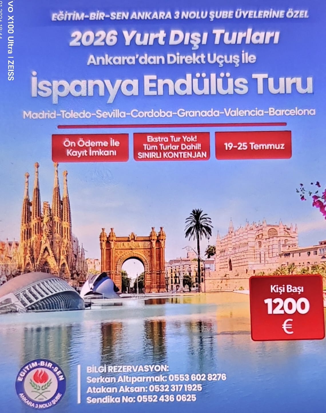 inceleyerek, muhteşem güzellikletki kabartmalarını göreceğiz.Turun sonunda rehberimizin belirteceği saatte Barcelona Havalimanı’na transferimiz gerçekleşiyor. . Bilet, bagaj ve pasaport işlemlerinin ardından, Ajet Hava Yolları’nın VF608 sefer sayılı uçağı ile saat 13:20’de Ankara’ya hareket. Saat 19:20’de Ankara’ya varış. Bir sonraki seyahatinizde görüşmek dileğiyle …